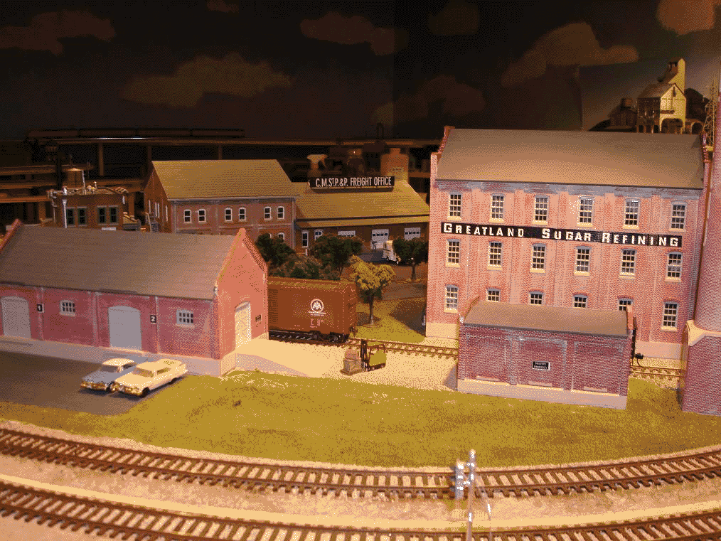 Layout DescriptionThe layout is a triple folded dogbone configuration. The two legs are laid together so that the Mainline appears as a double track mainline. It folds over itself several times as it winds around a 20 X 22 foot room. The loops at the end of the doglegs are reverse loops, allowing trains to use crossovers as passing sidings throughout the layout, without any out-of-phase problems. One end has a triple track reverse loop and the other end has a single track reverse loop transversing a trestle bridge. Each track reverses independently.Daily OperationsFreight trains remain overnight at Broken Bow, Benning, Garrison, Red Deer, and Nimrod. Passenger trains remain overnight at Calgary and Broken Bow Station. There are two round trip passenger trains daily from Calgary to Broken Bow.