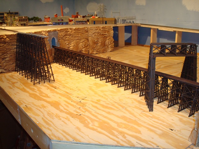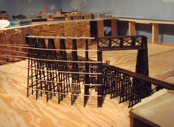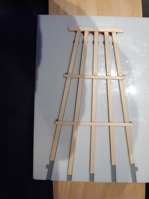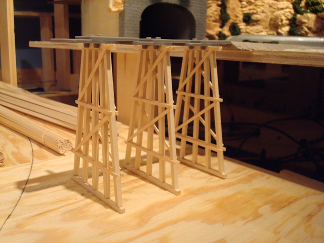 The photo shows the first low trestle bent in the jig.